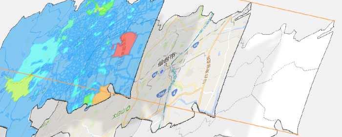 地図位置情報表示技術モバイル端末のGPSやブラウザから送られる緯度経度情報や、地図上から選択した位置に様々な情報をプロットし、分析・集計の上、情報をレイヤーに分けて地図に表示することができる技術。